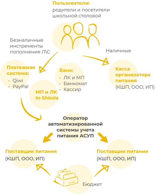 — полнофункциональный модуль, который ведёт автоматический учёт школьного питания и избавляет школу от наличных денег благодаря системе безналичного расчёта.