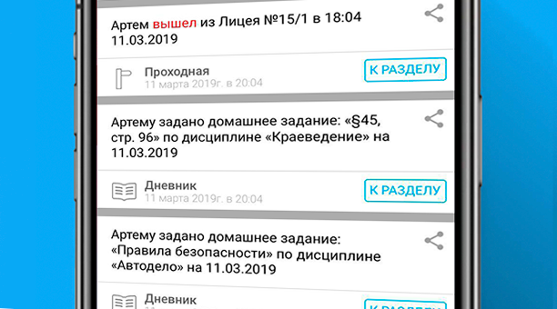 Ежедневные оповещения о ходе учебного процесса и всех важных событиях школьной